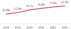 消费者美学观念以及功效需求的变化,推动具备“抗衰”功能的注射剂市场发展。目前中高收入医美消费者中,非手术类医美项目仍是其主流的项目需求,消费者美学观念正逐步向轻量化医美项目转变,消费者的审美追求更自然。此外,根据对近3000万医美消费者于2024年上半年度的搜索数据显示,“皮肤美容”类项目连续三年占比前二,人们对皮肤美容的需求不断增长,尤其是在面部年轻化、抗衰除皱等方面的需求。注射部位未来将从面部拓展至身体部位,私密整形项目从2023年占比第十一名提升至第七名,未来也将推出更对针对身体部位的注射剂产品,以迎合不断变化的消费者需求。