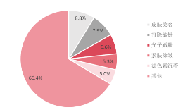 再生抗衰类:再生抗衰类注射剂又分为微球再生类、胶原蛋白类、PDRN类以及其他包括外泌体、托细胞外基质、PRP等类别。具体来看,1)微球再生类:一种以生物刺激性材料为主要成分,按主要成分可分为PLLA、PDLLA、PCL、CaHA等,通过刺激人体自身免疫反应来促进胶原蛋白的再生,从而起到增容、紧致、抗衰等目的。2)胶原蛋白类:是一种生物聚合物,在体内以三股螺旋结构组成胶原,而胶原又堆叠成纤维或非纤维结构,通过注射到真皮层或皮下组织,刺激胶原再生,从而达到皱纹填充、皮肤美容等目的。3)PDRN类:天然来源的DNA衍生物,由链长50~2,000个碱基对的DNA片段的混合物组成,最初被描述为一种从人胎盘中提取的组织修复刺激剂,目前主要从鲑鱼的精子细胞中提取和纯化,基于PDRN成分的安全有效性,已有大量研究积累,证明其具有解决炎症性皮肤问题、修复皮肤创面、对抗皮肤老化、实现胶原再生等功效。