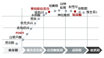行业萌芽期:随着对原材料的发现、制备工艺和技术的探索加深,医美再生抗衰注射剂行业的工业化、商业化的步伐不断加快;胶原蛋白等产品的率先上市,也逐步验证其在医美领域的治疗效果。