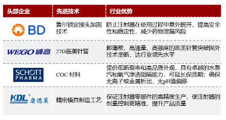 原料及注射器的质量决定了注射剂的疗效和安全性,近年头部厂商通过创新制备技术、新型材料、精密制造工艺等手段,加强其在产业链环节中的议价能力和竞争壁垒。