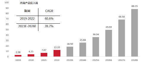图3: 中国医美注射剂市场规模及潜在增长空间预测,2019-2028E